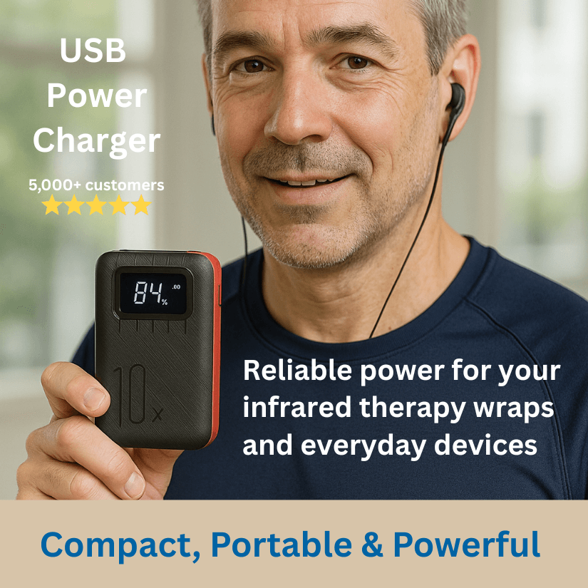 This premium bundle includes our signature Infrared Back & Body Wrap and a convenient USB Power bank, that fits into your wrap.
