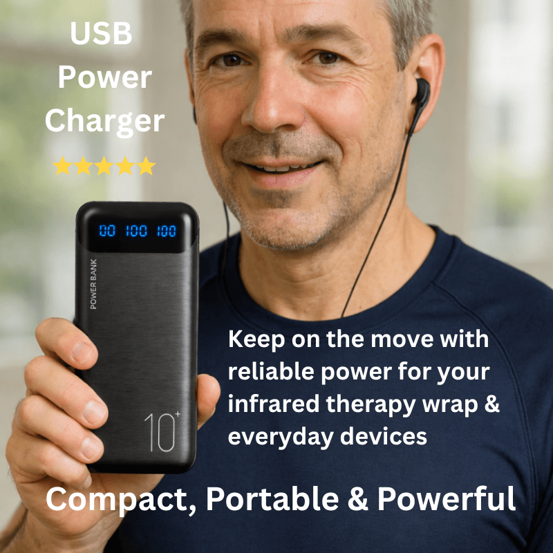 * USB Power Bank: just pop the power bank in the convenient pouch on the Back & Body wrap and keep on the move, while the infrared targets the problem area.